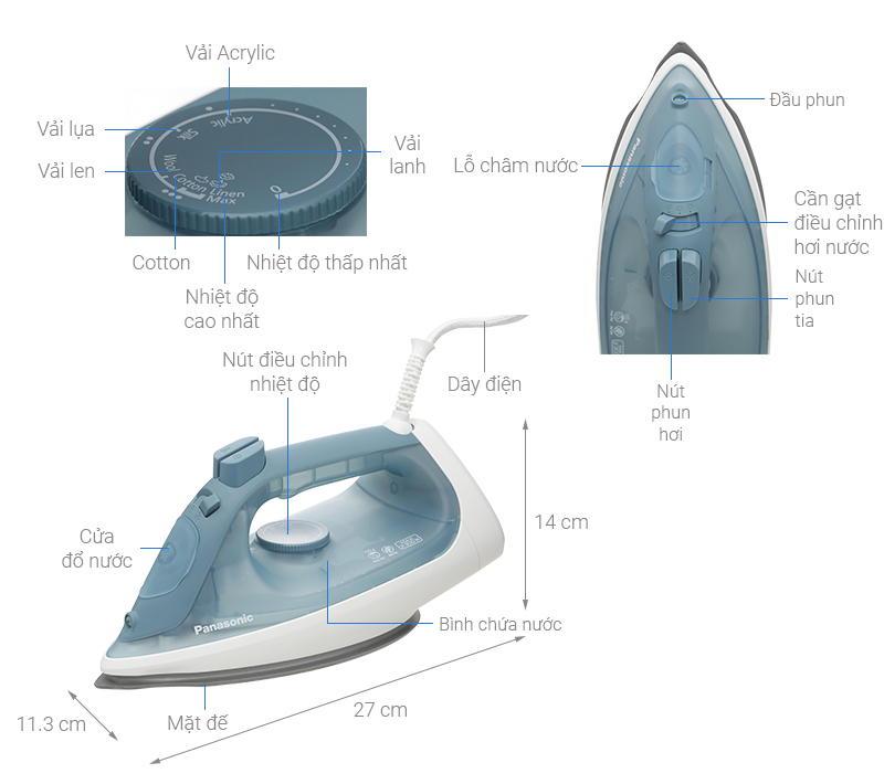 – Có nhiều chức năng ủi: phun hơi, phun tia, ủi khô và ủi hơi nước.
