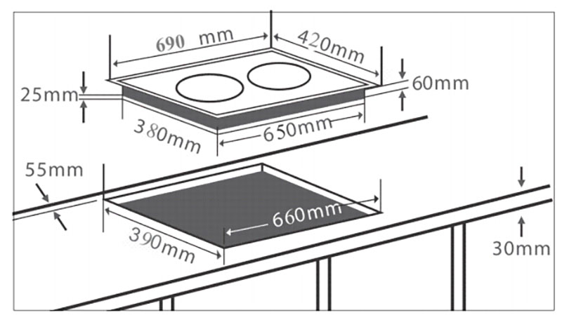 | Kích thước khoét đá | 660×390 mm |