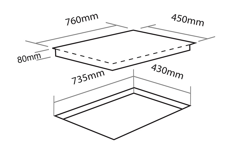 | Kích thước cắt đá (DxR) | 735*430mm |