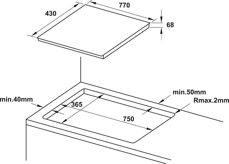 Thiết kế cạnh sàn lò: Mặt gốm thủy tinh SCHOTT Ceran, vát cạnh trước