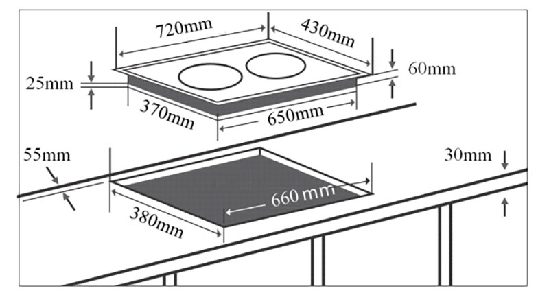 Bếp từ đôi Chef’s EH-DIH323 sử dụng mặt kính Crystal Black cao cấp, bo viền nhôm 2 cạnh bảo vệ mặt kính. Kính được làm từ sợi gốm Ceramic thủy tinh siêu bền, có khả năng chịu nhiệt lên đến 1000°C, chống sốc nhiệt 800°C, chịu lực tới 10kg. Kích thước 720×430 mm phù hợp với nhiều không gian bếp.