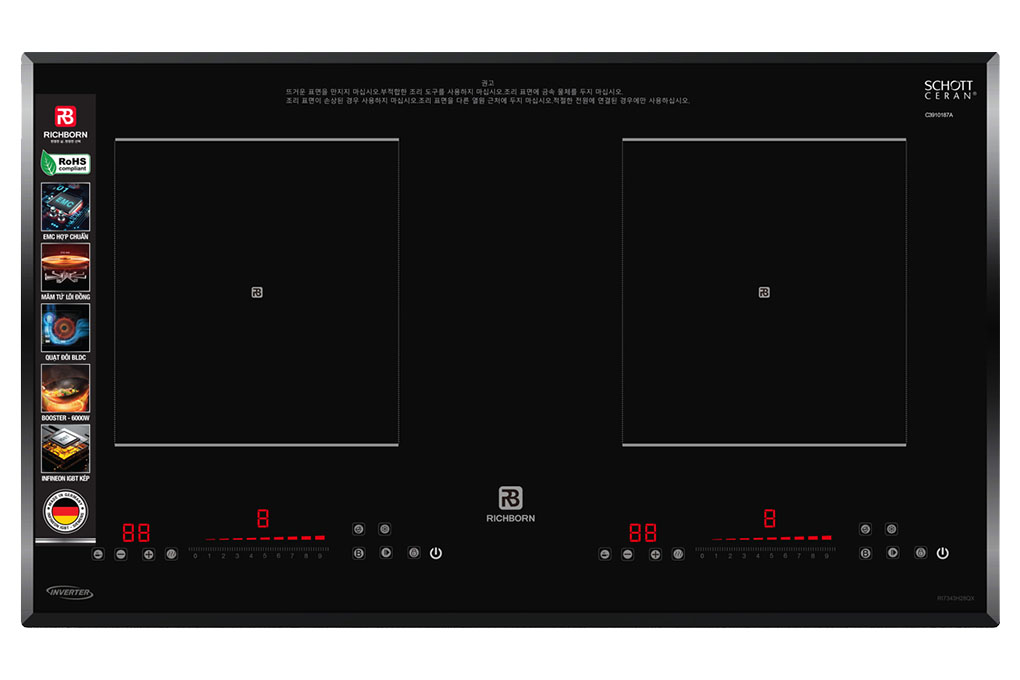 Công suất tổng lên tới 6 000 W (Booster cả hai vùng), giúp làm nóng cực nhanh, tối ưu cho việc nấu nướng hiệu quả