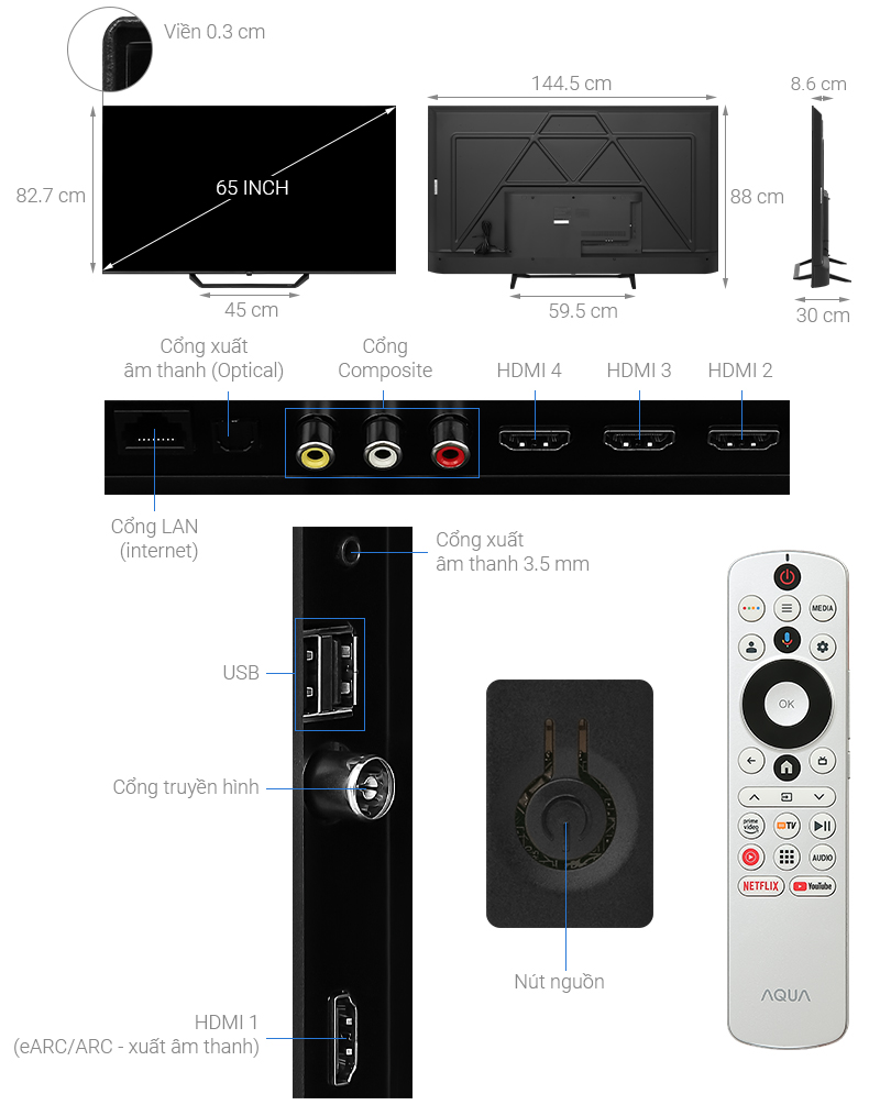 – Màn hình lớn 65 inch của tivi Aqua không chỉ mang đến những phút giây giải trí tuyệt vời mà còn giúp bạn đắm chìm vào thế giới điện ảnh với độ phân giải cao và màu sắc sống động, ngoài ra mọi chi tiết dù là nhỏ nhất đều được tái hiện một cách tinh tế và chân thực.