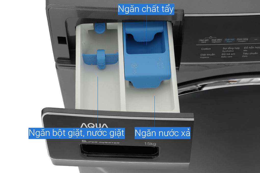 – Máy giặt Aqua có nhiều chương trình được cài đặt sẵn: giặt diệt khuẩn, giặt Refresh, giặt chăn mền, giặt 15 phút,… Trong đó, chương trình giặt Refresh sử dụng hơi nước ấm thẩm thấu sâu vào từng sợi vải, giúp loại bỏ mùi hôi và ngăn ngừa sự phát triển của vi khuẩn. Chương trình cũng giúp giảm nhăn và làm mềm sợi vải, giữ quần áo luôn trông như mới.