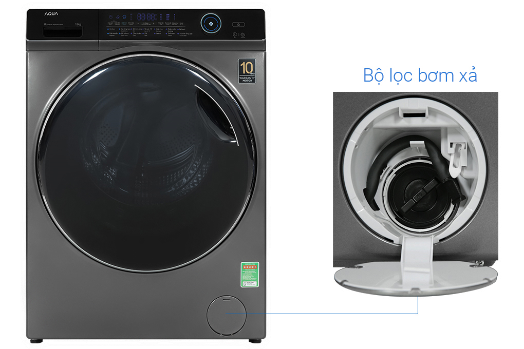 Máy giặt Aqua Inverter 15 kg AQD-A1500H PS với khối lượng giặt tối đa lên đến 15 kg cùng công nghệ Inverter tiết kiệm điện năng, vận hành êm ái, máy sẽ là sự lựa chọn thích hợp cho các gia đình có đông thành viên (trên 7 người).