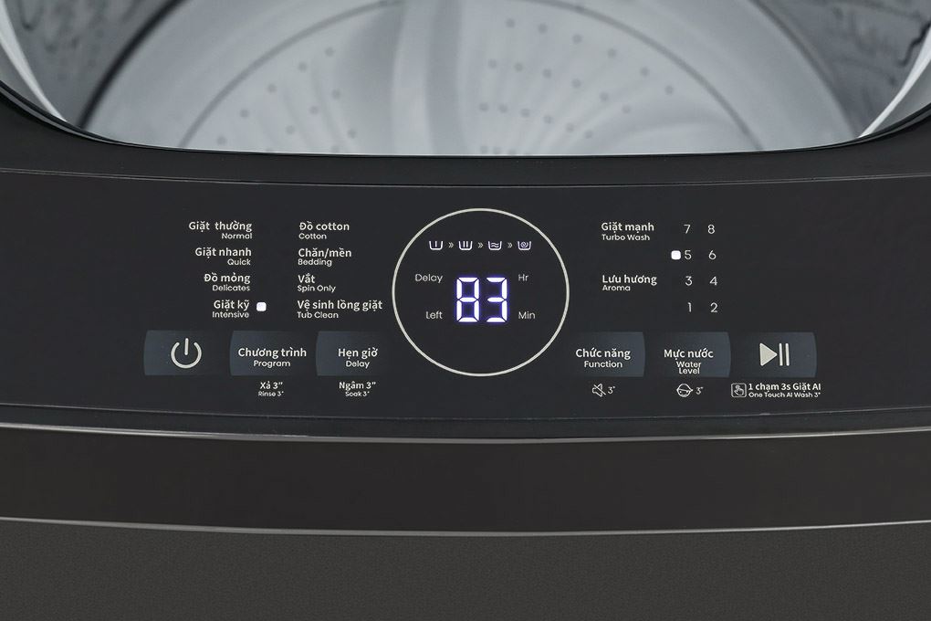 Điểm nổi bật nhất làgiặt AI thông minh, tự động nhận biết khối lượng quần áo và mức độ bẩn để điều chỉnh lượng nước, thời gian và tốc độ quay phù hợp. Chỉ với một chạm, người dùng không cần mất thời gian chọn chế độ thủ công mà vẫn đảm bảo quần áo được giặt sạch tối ưu.