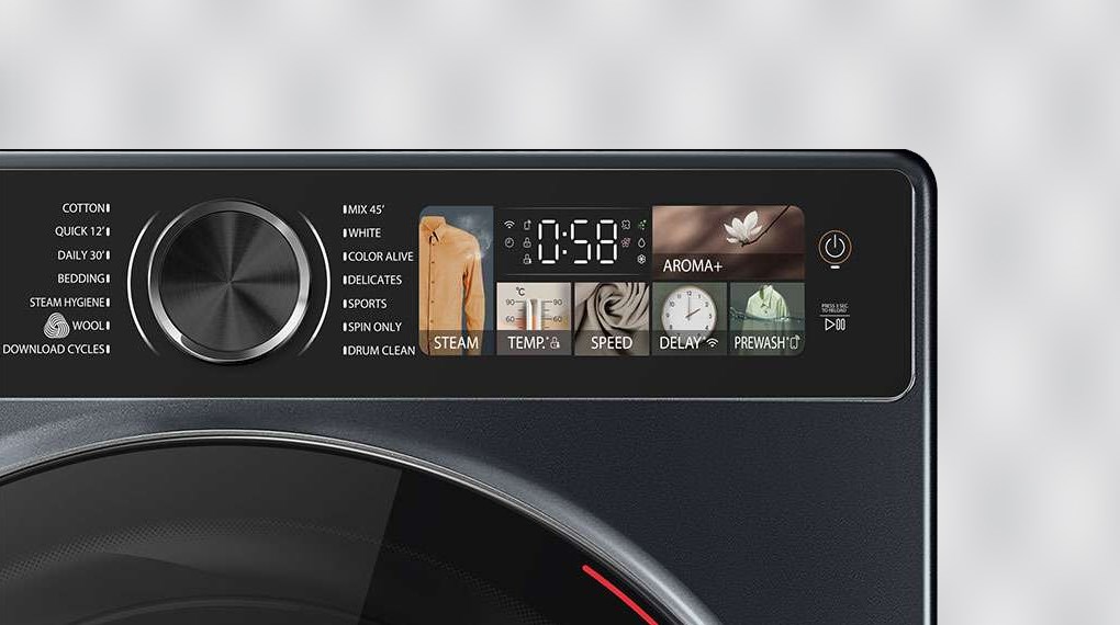– Bảng điều khiển song ngữ Anh – Việtcảm ứng màukèm nút xoay nhạy bén,màn hình LEDsắc nét với hình ảnh minh họa rõ ràng, có chữ và số hiển thị to rõ cho thao tác điều khiển thiết bị nhẹ nhàng và thân thiện hơn.
