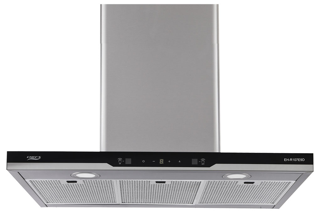 Máy hút mùi CHEF’S EH-R107E9D hình dáng chữ T, kích thước 90cm phù hợp với nhiều không gian bếp hiện đại. Chất liệu thân máy làm từ inox cao cấp 430 sang trọng, màu sắc sáng, dễ dàng lau rửa, vệ sinh.