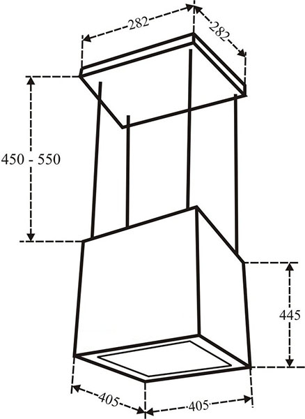 Hút mùi kiểu máy treo độc lập sáng tạo, là điểm nhấn đặc biệt, giúp gian bếp thêm vẻ độc đáo và sang trọng. Máy hút hình vuông, cạnh 405mm, nhỏ gọn, nổi bật không gian bếp.