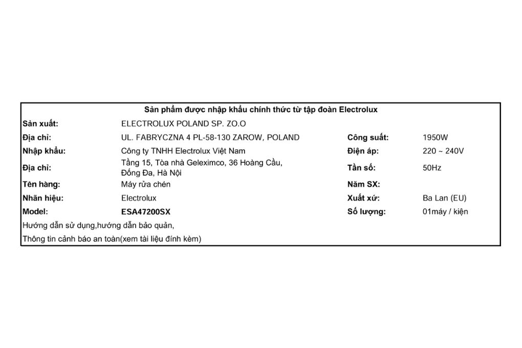 Máy rửa bát độc lập Electrolux ESA47200SX