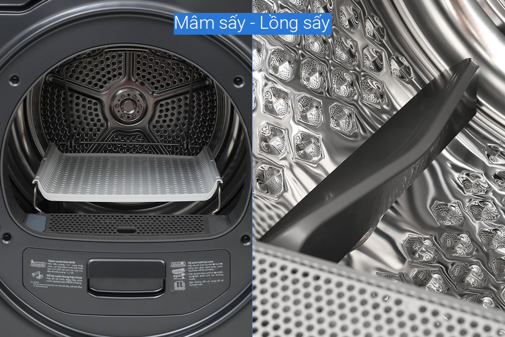 – Lồng sấy bằng thép không gỉ giúp dẫn nhiệt đều, bền bỉ và dễ làm sạch.