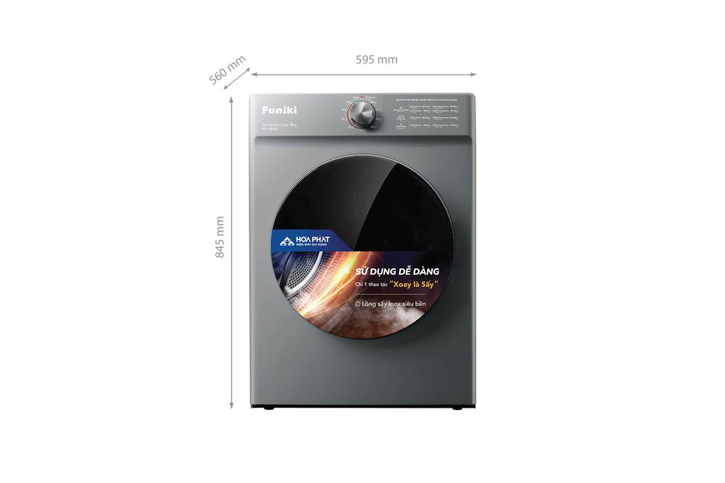 Máy sấy Funiki HD V680AG được thiết kế với dung tích lồng sấy 8kg, phù hợp với các gia đình có từ 3-5 thành viên. Với khả năng sấy khối lượng lớn trong một lần, sản phẩm giúp bạn tiết kiệm đáng kể thời gian, đặc biệt trong những ngày mưa nhiều hay khi cần sấy quần áo gấp.