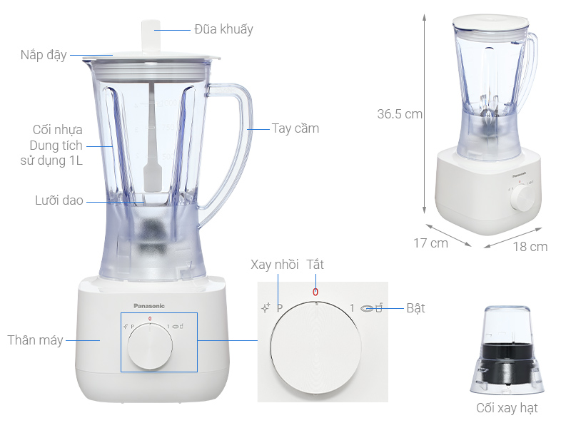 – Máy xay sinh tố đa năng Panasonic MX-EP3111WRA sở hữu sắc trắng tinh tế, phù hợp với những gian bếp từ nhỏ đến vừa, tối ưu hóa không gian cho gia đình.
