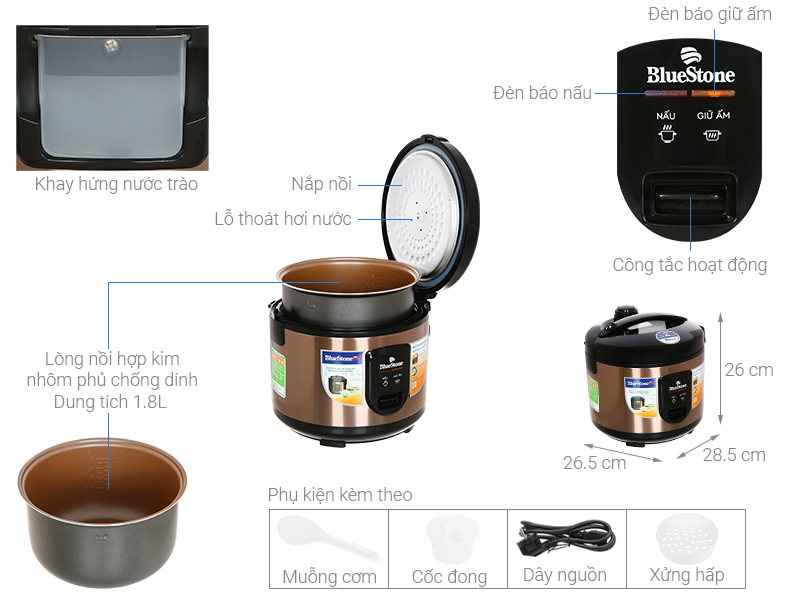 – Mẫu nồi cơm điện BlueStone này được thiết kế màu vàng đồng – đen hiện đại, làm tăng vẻ đẹp thẩm mỹ cho không gian bếp.