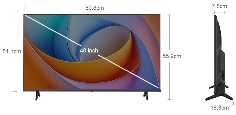 Kích thước có chân, đặt bàn: Ngang 89.8 cm – Cao 55.9 cm – Dày 18.3 cm