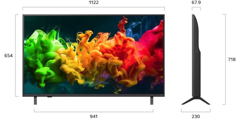 Kích thước không chân, treo tường: Ngang 112.2 cm – Cao 65.4 cm – Dày 6.79 cm