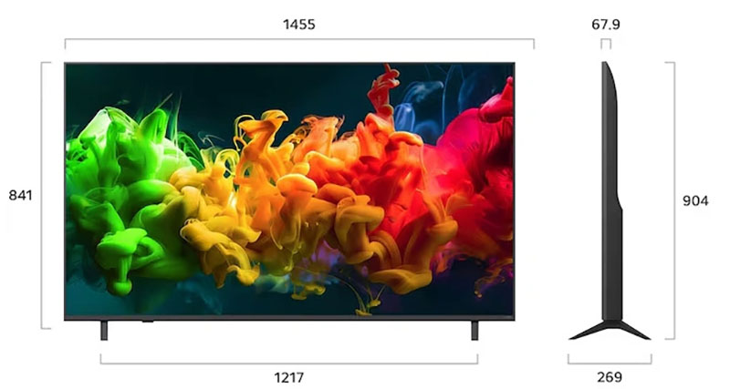 Kích thước không chân, treo tường: Ngang 145.5 cm – Cao 84.1 cm – Dày 6.79 cm