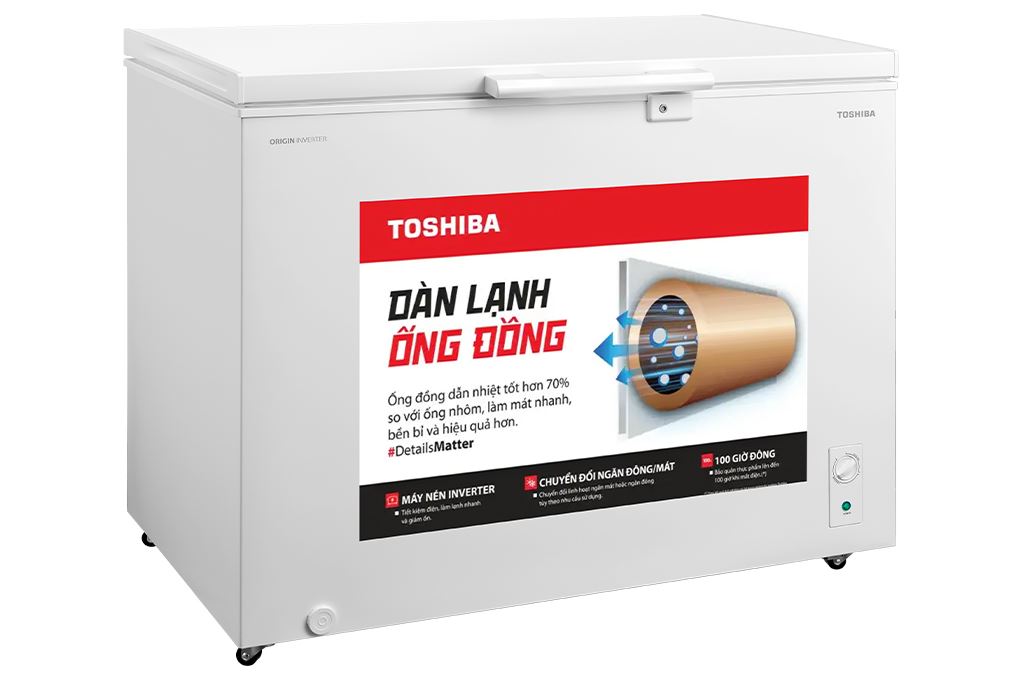 Tủ đông sử dụng dàn lạnh bằng đồng có khả năng dẫn nhiệt tốt, cho tốc độ làm lạnh nhanh và độ bền cao. Nhờ lớp cách nhiệt dày, tủ có thểgiữ đông thực phẩm lên đến 100 giờ khi mất điện, hạn chế tình trạng hư hỏng.