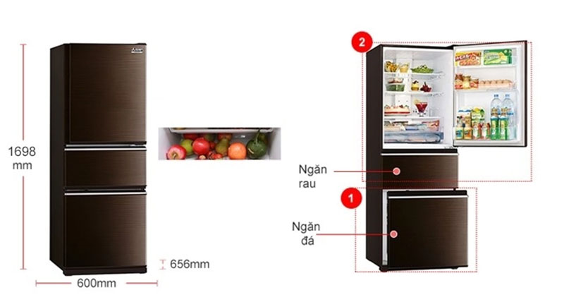 Trong đó ngăn lạnh có dung tích chứa là 180 lít, ngăn đông có dung tích là 80 lít, ngăn rau củ 70 lít cho bạn có thể thoải mái dự trữ thật nhiều thực phẩm cho gia đình bạn.