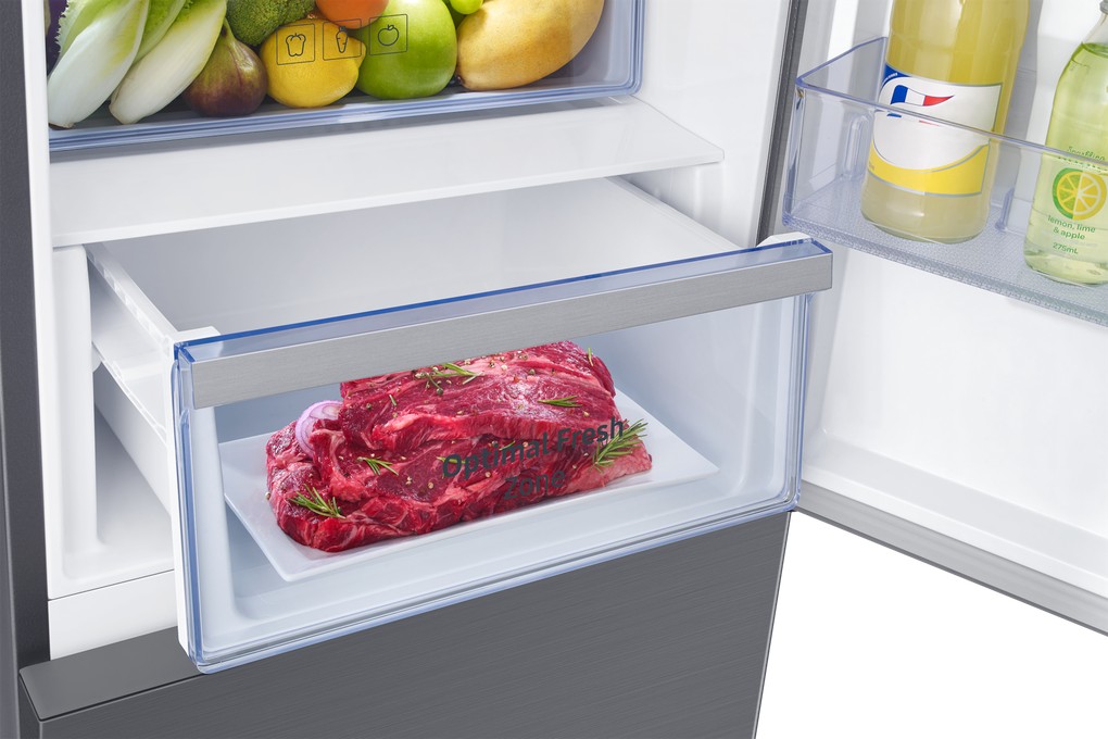 Tủ lạnh Samsung Inverter có ngăn đông mềm Optimal Fresh Zone được thiết kế riêng biệt dạng ngăn kéo với nhiệt độ chuẩn -1 độ C, phù hợp bảo quản thực phẩm tươi sống và không làm đông đá, đảm bảo dưỡng chất của thực phẩm. Đồng thời, người dùng không tốn thời gian rã đông mà có thể lấy ra chế biến ngay khi cần.