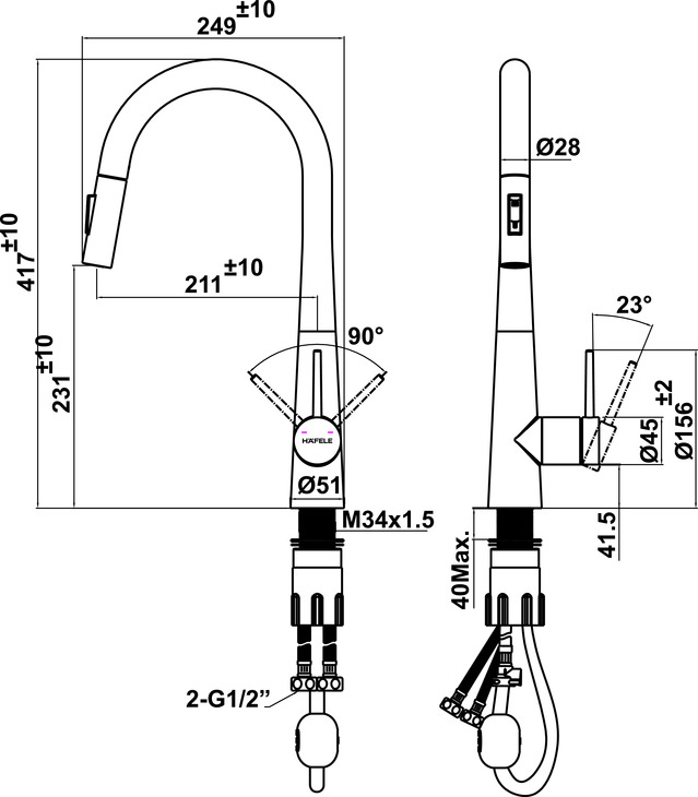 Vòi rửa bát Hafele HT21-CH1P254 (577.55.200)